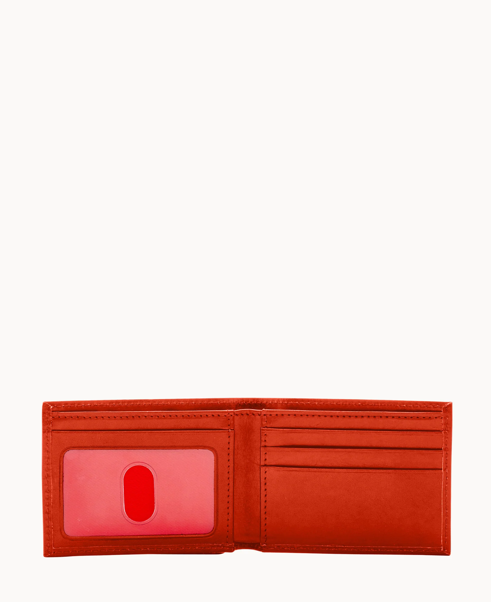 One ID window. Billfold compartment. Three credit card slots.